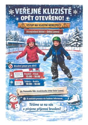 Upozornění Z důvodu oteplení je kluziště dočasně uzavřeno až do odvolání. O případném znovuotevření vás budeme informovat. Děkujeme za pochopení.