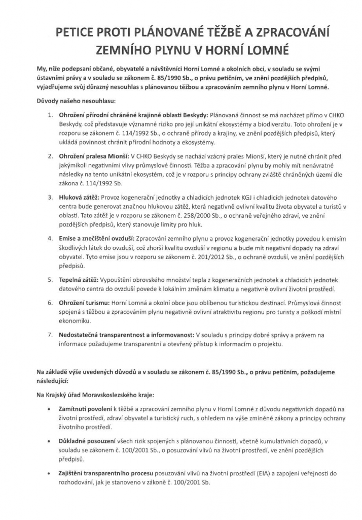 Petice (podepsat je možno na OÚ)